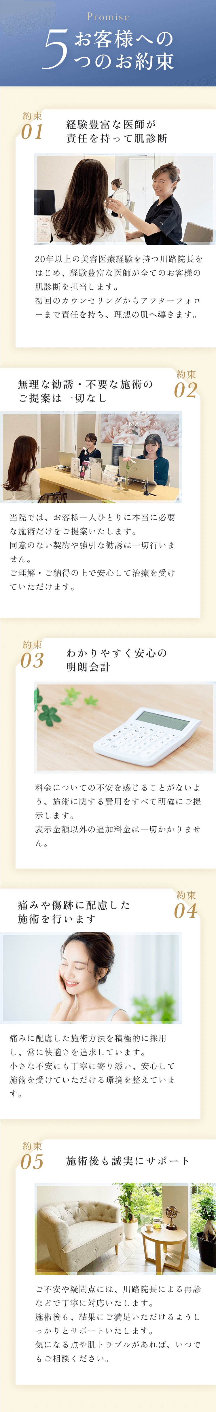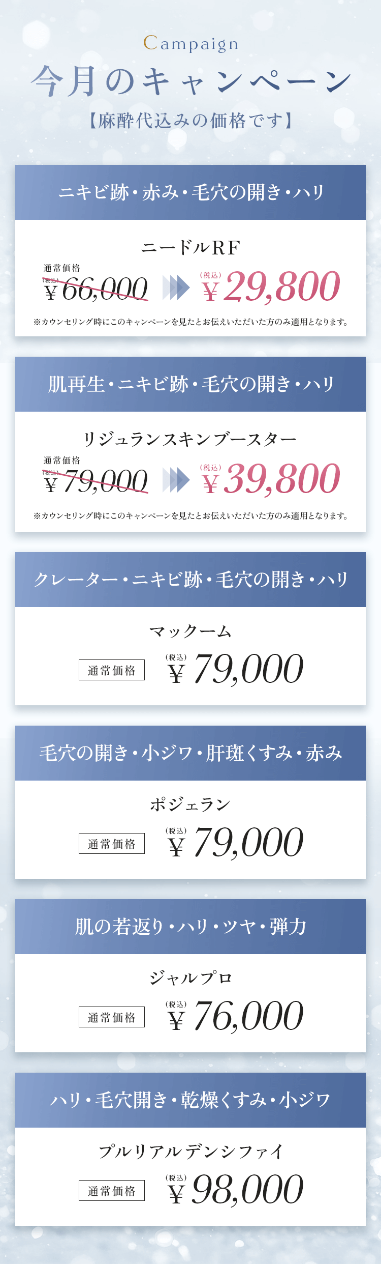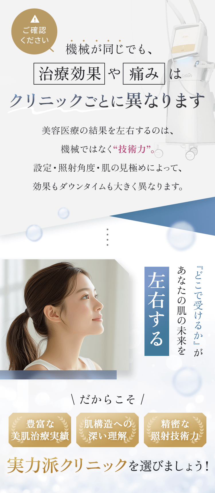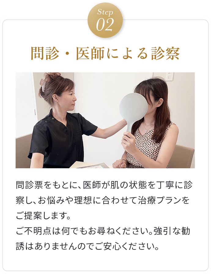 お一人おひとりのお肌の状態やお悩みに合わせて、最適なプランをご提案しますので、カウンセリングの際にぜひご相談ください。