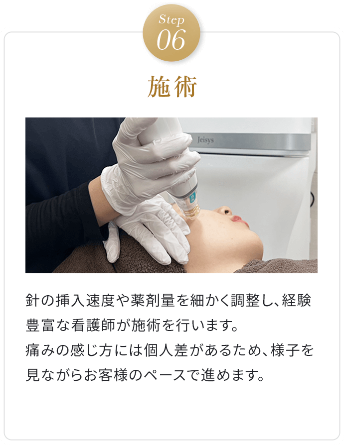 麻酔を使用していただくと痛みはほとんどありませんので、安心して施術をお受けいただけます。