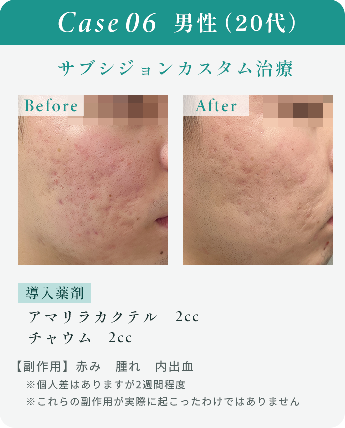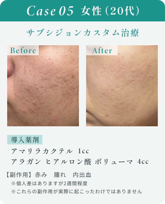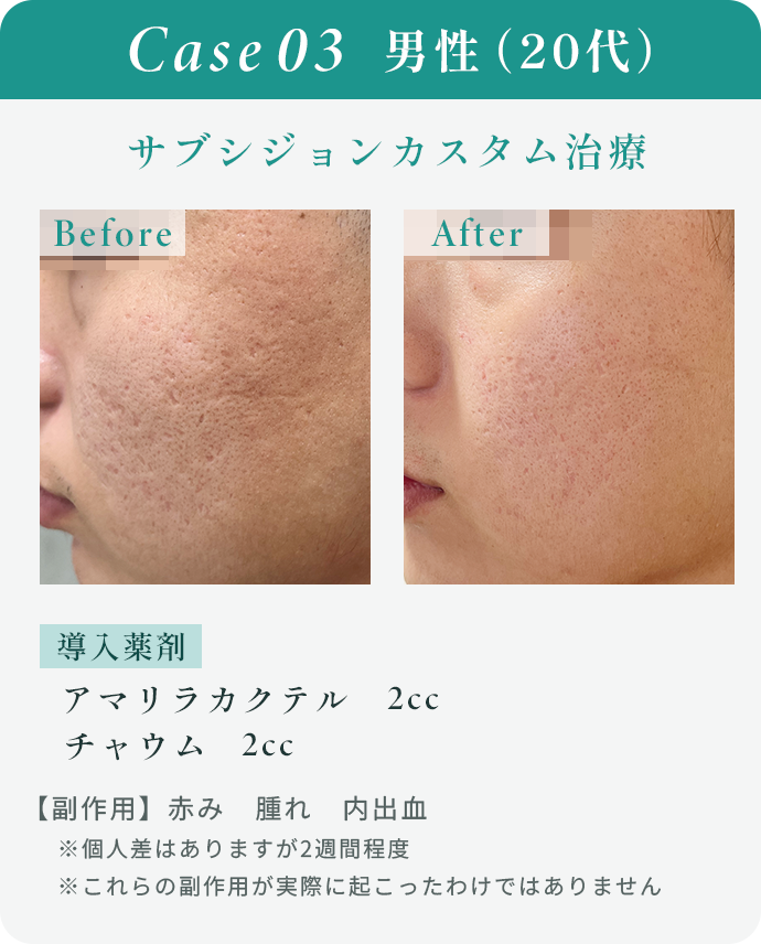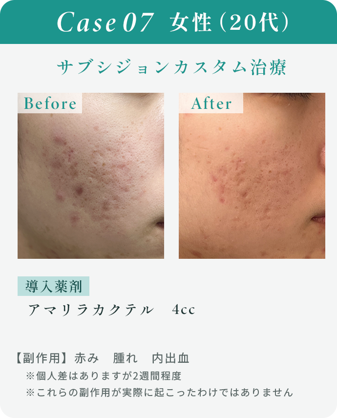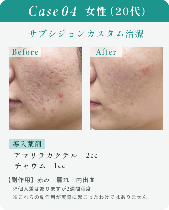 当院は無償にて痛み止めの内服薬を処方しておりますので、術後の痛みが不安な方もご安心いただけますが、まれに施術直後に腫れ(むくみ)、軽度の内出血、赤みが出ることがあります。